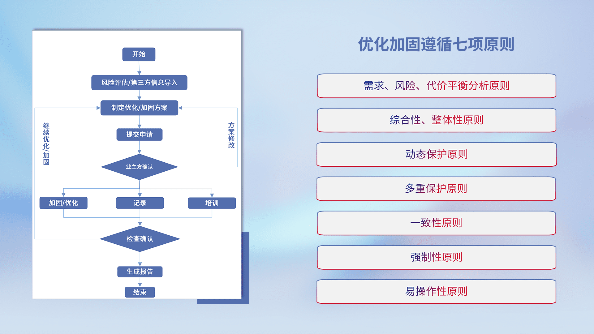 最大程度利用现有资产,,对评估发现的问题进行封堵与整改,,防止漏洞被利用,,提升整体网络安全性,,为客户带来高标准的优化加固服务。。